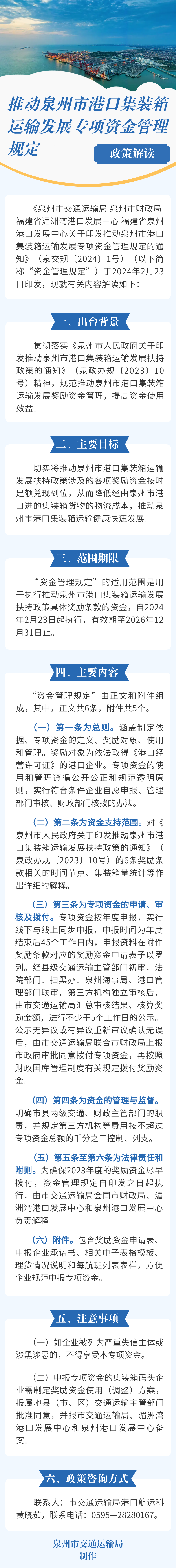 泉州市财政局 福建省湄洲湾港口发展中心 福建省泉州港口发展中心关于印发推动泉州市港口集装箱运输发展专项资金管理规定的通知(泉交规〔2024〕1号)